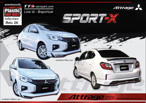 SPORT-X - ชุดแต่ง Attrage 2022 2021 2020 2019, Attrage แต่งสวย, Attrage แต่งซิ่ง, ชุดแต่งรอบคัน Mitsubishi Attrage, สเกิร์ต สปอยเลอร์ ของแต่ง อุปกรณ์แต่งรถ Attrage