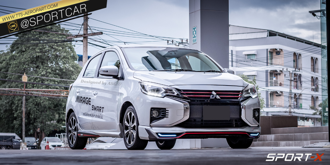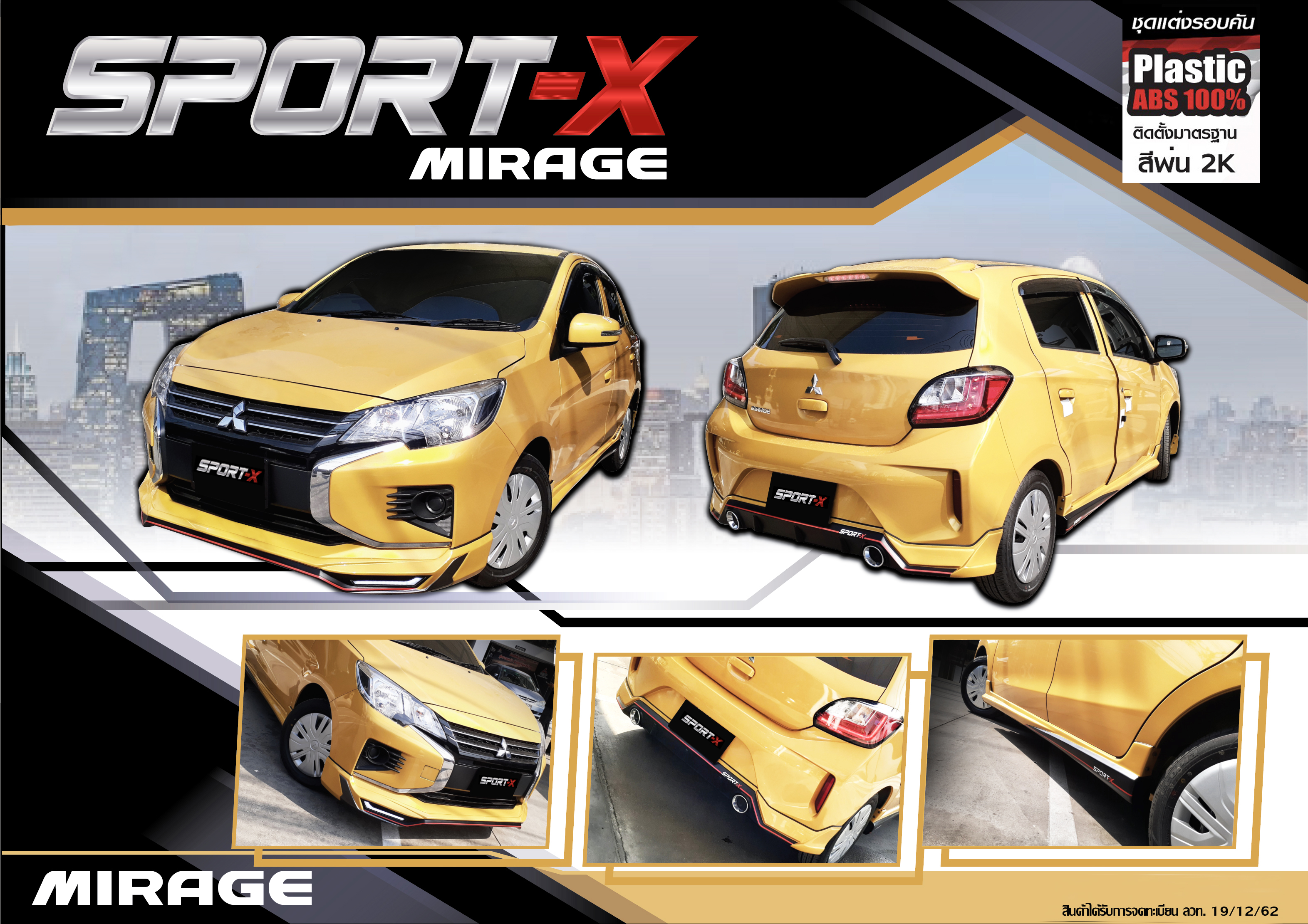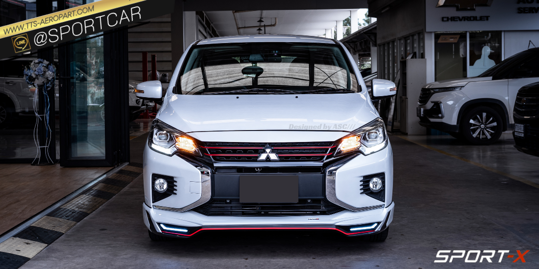 Sport X - ชุดแต่งรอบคัน Mirage 2022 2021 2020 ใหม่ล่าสุด พร้อมไฟหน้าdrl + ปลายท่อสปอร์ตคู่